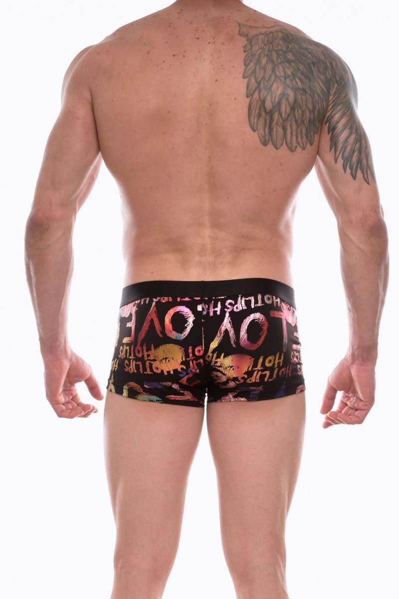 Черные трусы-боксеры с разноцветным блестящим принтом.