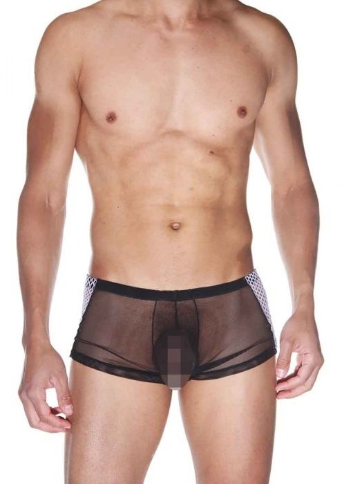 Трусы мужские-боксеры из полупрозрачной сетки. По бокам вшиты вставки из крупной сетки.
