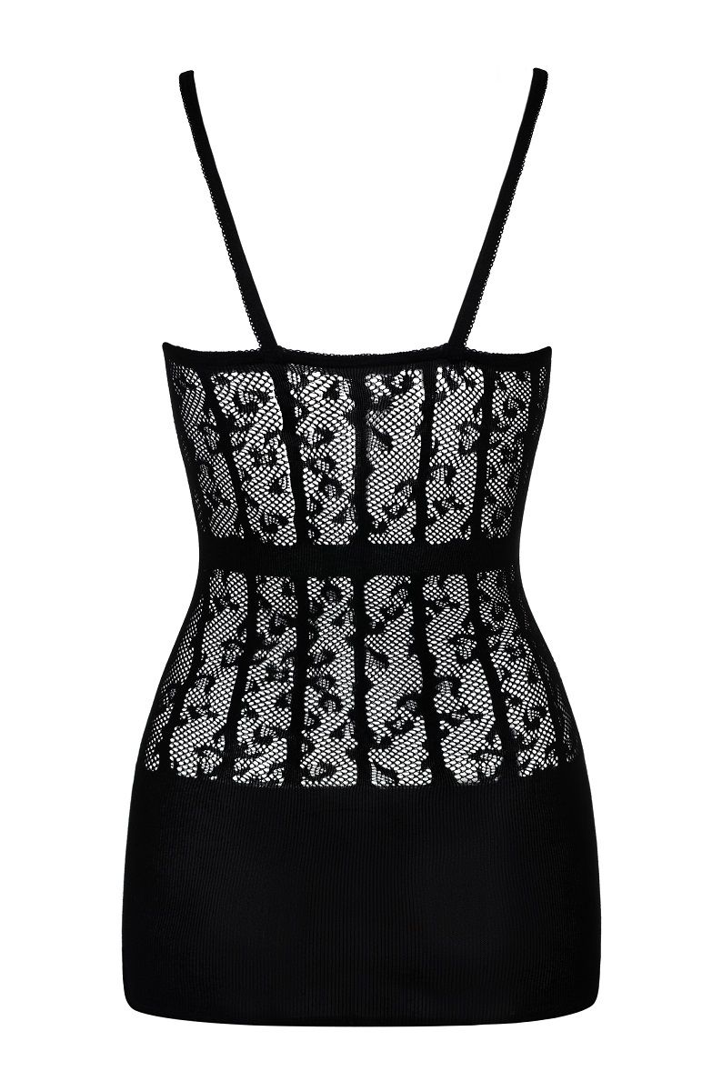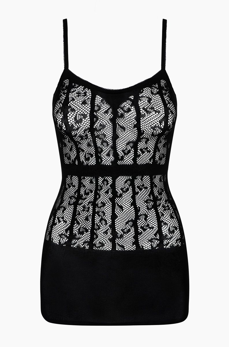 Ажурная сорочка с цветочным узором. Вертикальные полоски узора сделают вас визуально еще более изящной. Эластичный материал хорошо тянется и отлично садится по фигуре.