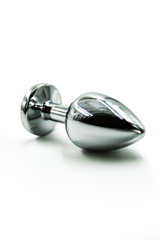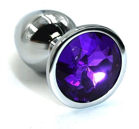 Анальная пробка из алюминия размер M. Страз в основании круглой формы, выполнен из стекла темно-фиолетового цвета. Упакована в вельветовый мешочек для хранения. Вес - 82,5 гр.