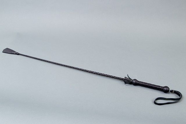Стек состоит из гибкой основы,овитой натуральной кожей черного цвета,наконечника-кисточки и удобной рукояти с петлей для надевания на руку (темляк). Длина кисточки - 10 см.