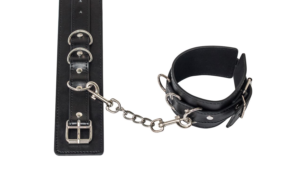 Обезоружить партнера и показать ему, кто сегодня руководит сценарием, можно с помощью одного простого приспособления - поножей. Натуральная ПВХ-материал нежно захватывает ногу в приятный плен, подчеркивая изысканность и пикантность ситуации, и дарит совершенно новые ощущения, связанные с невозможностью полноценно двигаться. Если же жертвой сегодня будете не Вы, то сможете вдоволь насладиться и поиграть с каждой частью тела своего пленника. Поножи очень прочные, поэтому Вы можете прикрепить их к любому элементу мебели, возле которого будет разгораться ваша страстная игра. Ширина - 6 см.