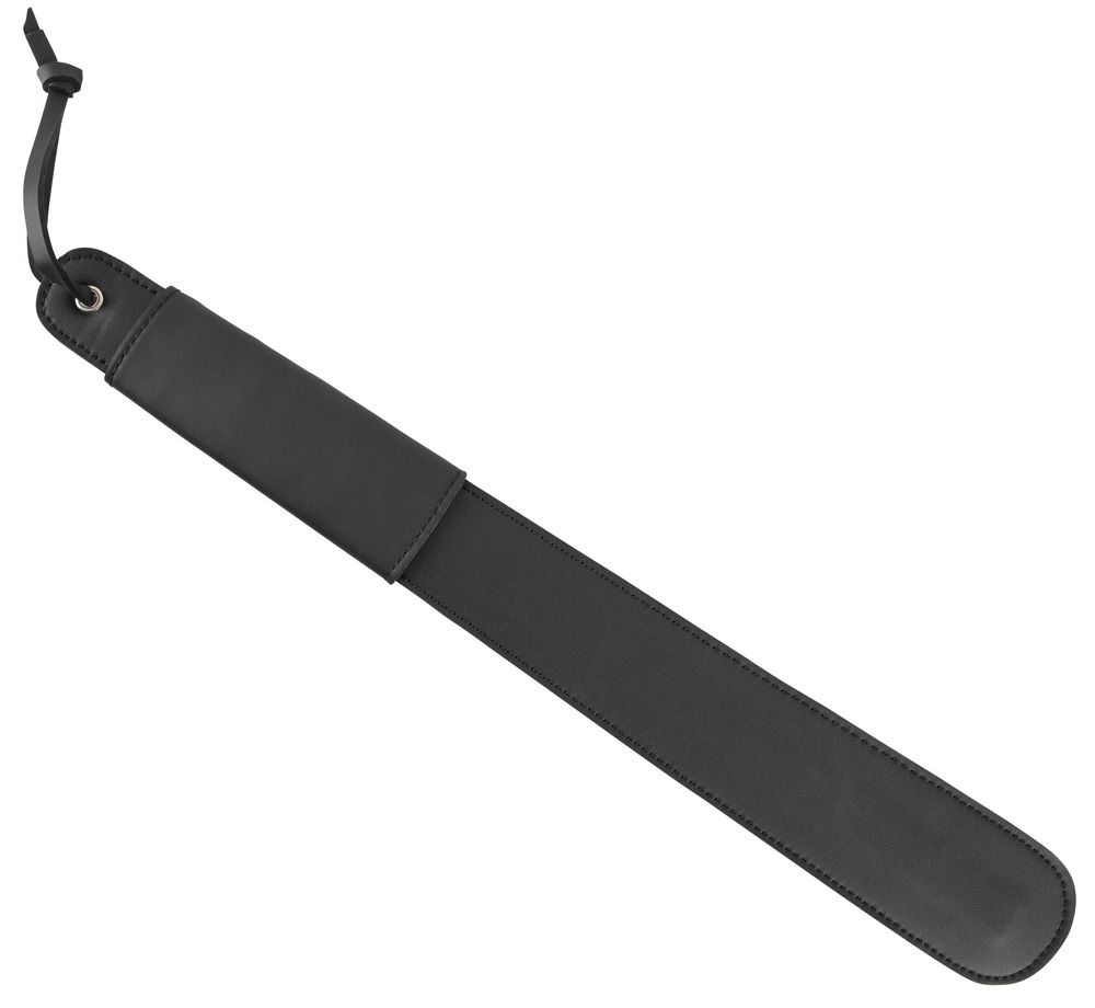 Модель сочетает в себе оригинальный дизайн и эргономичную форму. Стильная шлепалка с широкой пластиной для нанесения ударов изготовлена из мягкого полиуретана и имеет удобную петлю для руки, а ее массивная рукоять украшена велюром и шнуровкой. Для дополнительной прочности края девайса прошиты нитью.