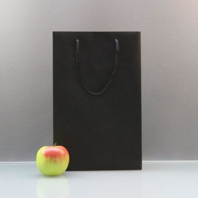 Чёрный бумажный пакет для покупок. Без ламинации. Выдерживает вес до 7 кг. Размеры - 23 х 36 х 10 см.