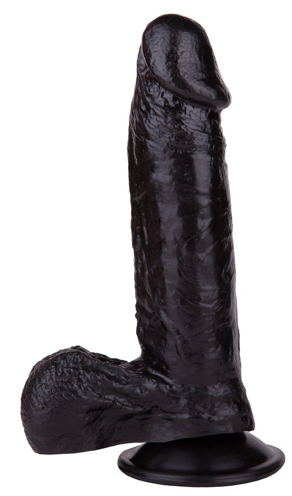 Чёрный-чёрный податливый ствол из упругого материала, покрытый тонкими венками… Крупная, чётко очерченная головка и большая мягкая мошонка… Глядя на эту реалистичную игрушку, невозможно удержаться от соблазна и не попробовать её ласк. Зафиксировав фаллоимитатор при помощи присоски на ровной твёрдой поверхности, вы можете насладиться чувственными проникновениями в лоно и яркими ощущениями от массажа вагинальных стеночек.