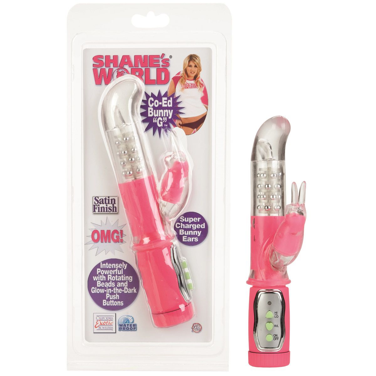 Небольшой вибратор с загнутым кончиком для G-точки с клиторальным стимулятором-зайчиком розового цвета. Имеет две скорости вибрации клиторального стимулятора и движение шариков в обе стороны. Водонепроницаемый.