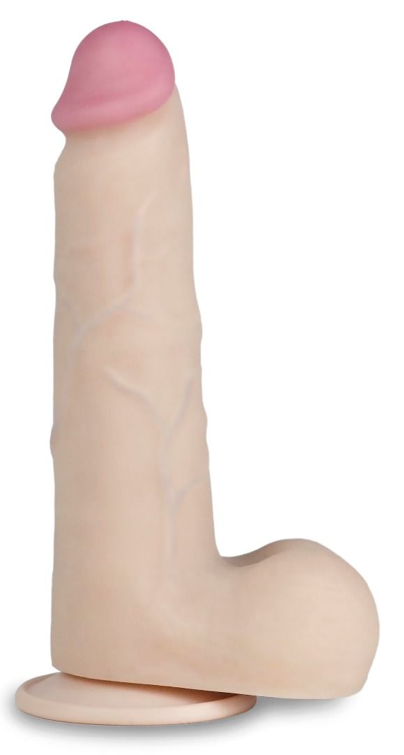Реалистик с вибрацией на присоске. Встроенный литий-ионный аккумулятор, заряжаемый практически от любого USB разъема. 12-скоростной механизм управления вибрацией. Изделие обладает гибкостью и упругостью, приближено по тактильным ощущениям к биологическому прототипу. Вибрационный механизм находится внутри упругого корпуса, который в свою очередь покрыт сверхмягкой оболочкой из материала неоскин. Индикатор зарядки просвечивает сквозь материал и находится рядом с кнопкой включения-выключения. Надавливанием и удержанием этой кнопки в течение 3 секунд механизм вибрации включается и выключается. Кратковременное нажатие кнопки меняет режим работы. Шнур имеет штырек, который вставляется в основании изделия (в области мошонки). Кабель с коннекторами входит в комплект изделия. Время зарядки составляет 30-60 минут, при этом индикатор гаснет. Рабочая длина - 17 см. Диаметр головки - 2,5 см.