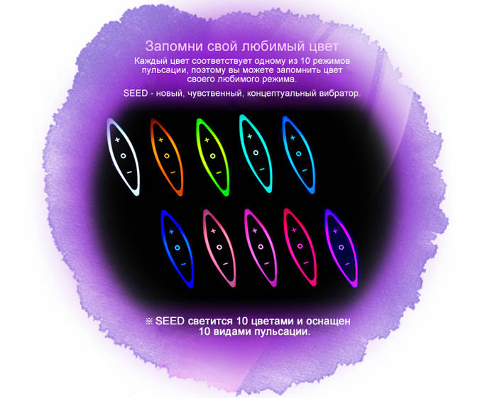 ZINI SEED- очень компактный вибратор нового поколения для чувственных прикосновений. Шелковистый платиновый силикон позволяет стимулировать нежную эрогенную зону очень деликатно. Каждый из 10 вариантов вибрации и пульсации соответствуют определённому цвету, что позволяет установить любимый режим даже в темноте. Полностью заряженный аккумулятор рассчитан на 4 часа непрерывной работы, зарядное устройство в комплекте. Дизайнерская упаковка делает ZINI роскошным подарком. Длина - 11 см. Диаметр - 3,4 см.